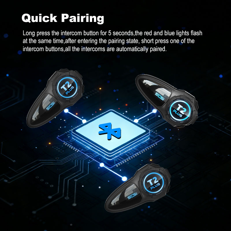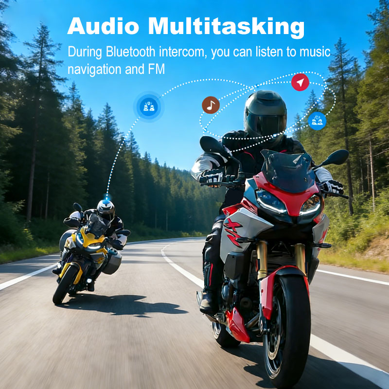 Dual Bluetooth chips inside, one for Bluetooth audio and the other for Bluetooth intercom. Two tasks canwork at the same time.