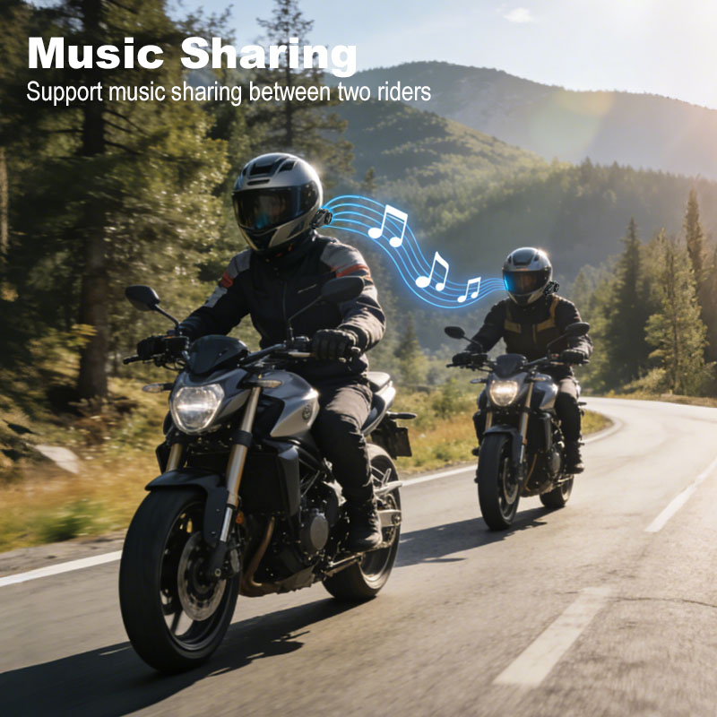 Riders can enjoy the same tunes whileon the road. The distance of musicsharing is equivalent to the intercom distance. With audio, conversations,and music blend seamlessly, making your journey more enjoyable and connected.