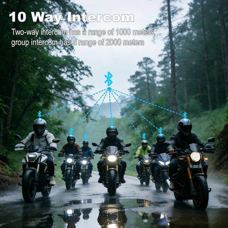 Support as many as 10 riders talksimultaneously. Perfectly meets thegroup communication and long-distance intercom demands.
